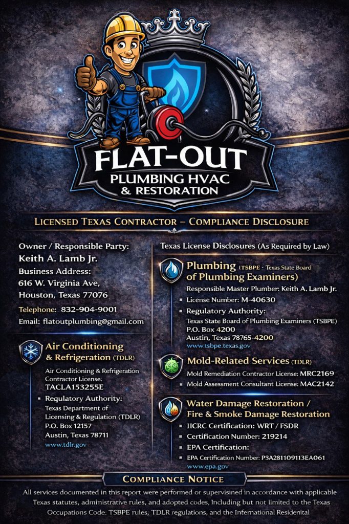 Company (referred to as either “the Company”, “We”, “Us” or “Our” in this Agreement) refers to Flat-Out Plumbing & Restoration LLC, 616 W Virginia Ave, Houston, TX 77076.